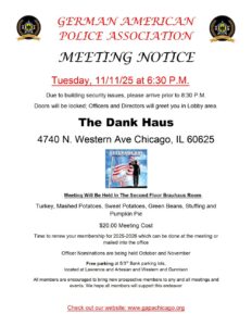 Established in Chicago, Illinois in 1975, the German American Police Association (GAPA) is a fraternal organization comprised of duly sworn law enforcement officers of German heritage. As a social organization, we are also a charitable one, committed to supporting honorable causes within the German American Community and those of law enforcement. Current charities include but are not limited to the GAPA Scholarship Fund, the DANK Spatzen Children’s Chorus, DANK Schule Nord, St.