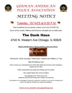 Established in Chicago, Illinois in 1975, the German American Police Association (GAPA) is a fraternal organization comprised of duly sworn law enforcement officers of German heritage. As a social organization, we are also a charitable one, committed to supporting honorable causes within the German American Community and those of law enforcement. Current charities include but are not limited to the GAPA Scholarship Fund, the DANK Spatzen Children’s Chorus, DANK Schule Nord, St.